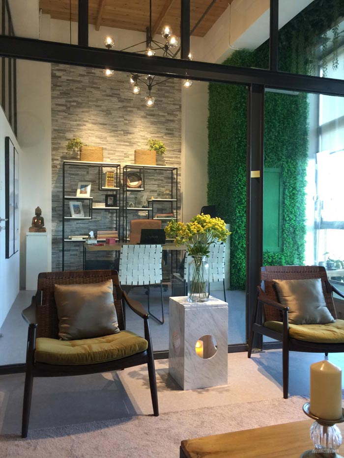 實(shí)例二:loft風(fēng)格服飾公司辦公室設(shè)計(jì)方案,采用追求原始的現(xiàn)代風(fēng)格,所以在設(shè)計(jì)的時(shí)候,選擇綠色和原木色等較接近自然的材質(zhì),作為空間的主體構(gòu)成,結(jié)合鋼結(jié)構(gòu)和灰色襯托主體的現(xiàn)代感,營造一種輕松愉悅的辦公環(huán)境。辦公區(qū)設(shè)置在空間的較里邊,這樣的設(shè)計(jì)給員工一個(gè)清靜的辦公空間,外部為討論區(qū)、交流區(qū)、會(huì)議區(qū),一切都遺傳了精致的設(shè)計(jì)作風(fēng),讓人對(duì)企業(yè)的產(chǎn)品充滿期待。